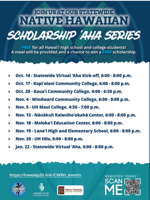- Edith Kanaka’ole Foundation Scholarship – applications available in May
